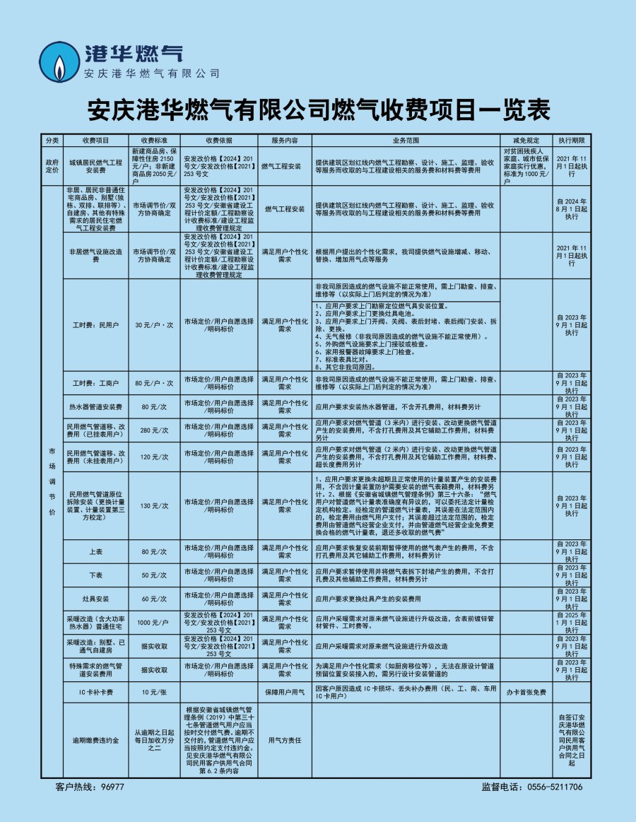 安慶港華燃?xì)庥邢薰臼召M項目一覽表(2024)