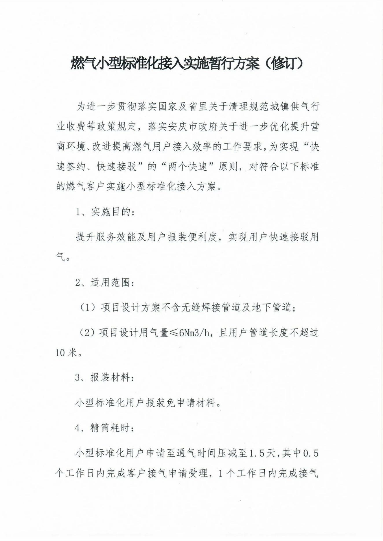 燃?xì)庑⌒蜆?biāo)準(zhǔn)化接入實(shí)施暫行方案(修訂)