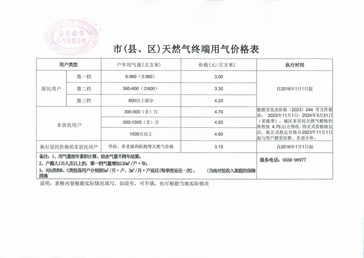 安慶港華規(guī)范收費(fèi)承諾書(shū)(含行業(yè)收費(fèi)項(xiàng)目清單及終端用氣價(jià)格表)
